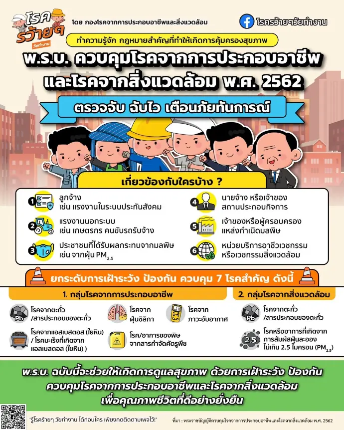 ขอบคุณข้อมูลจาก: https://www.facebook.com/strongworkers/photos/พรบ-ควบคุมโรคจากการประกอบอาชีพและโรคจากสิ่งแวดล้อม-พศ-2562-ทำความรู้จัก-กฎหมายสำ/3342409042709865/