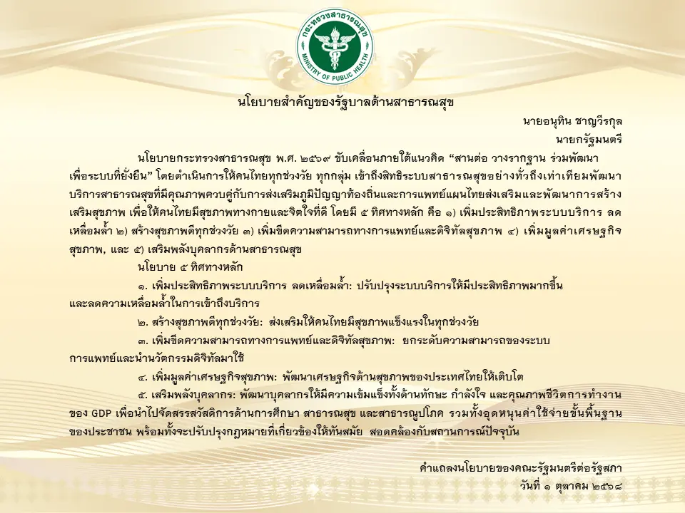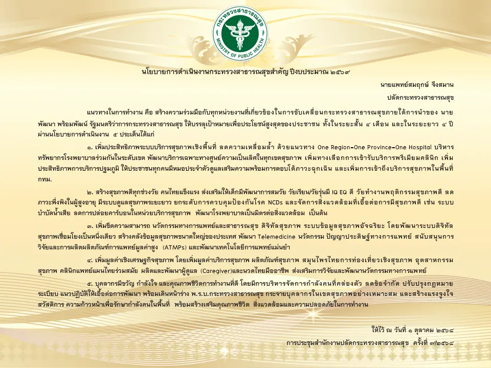 นโยบายกระทรวงสาธารณสุข ปี 2569